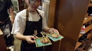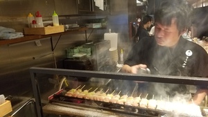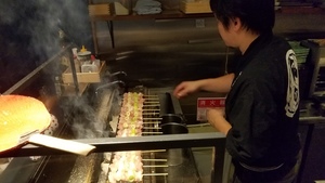 お店の大将の高原さんが、錦爽どりを串に刺し、こだわりを持って焼いてます!