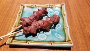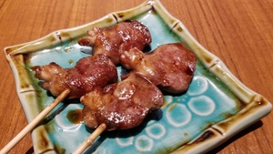 『焼き鶏マルコ』さんは、炭火焼いた、愛知県奥三河の地鶏。錦爽どりと、博多で人気の串物が自慢!