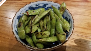 まず、ニンニクとゴマ油が効いた焼き枝豆!