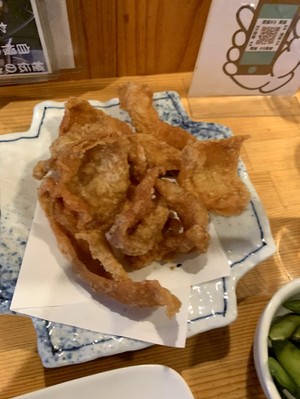 1品目は鶏皮せんべい!