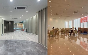 そして来週からは残り半分のフロアが改装工事に入ります。こんな風に2つの空間を見比べることができるのも今だけですね。