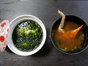 そして、〆は、生青のりのお茶漬けと、渡り蟹の味噌汁