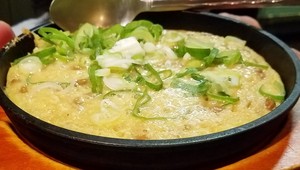 チヂミに、山芋と納豆をバターで鉄板焼きした納豆バター!