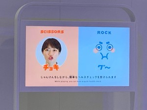 そんな画像診断の疑似体験ができるというのが「顔じゃんけん」。タブレットに向かって表情を作ると、カメラがそれを読み取って勝ち・負け・あいこを判断できるという仕組み。こちらでは、学生さんたちの楽しそうな歓声が上がって大盛り上がりしていました。
