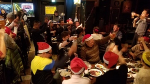 今日は、クリスマスイブ!サンタの帽子をかぶった人もたくさん!