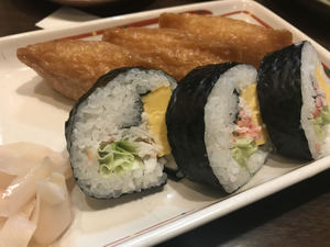 最後は、いなりと蟹の太巻き。