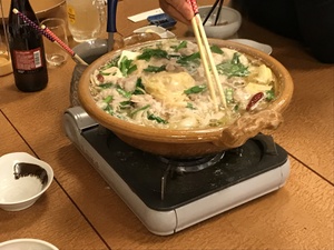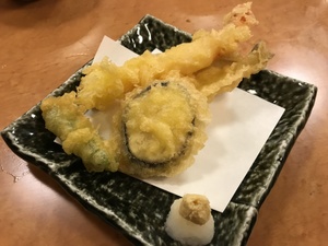 煮立つのをまってる間に、天ぷらも登場~!衣がさくさくで美味しい~!