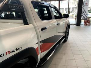 ボディのサイドにはGRの赤と黒のストライプとロゴステッカーが施されていますね。また足元に目をやると、大きめのサイドステップが印象的。これがあればオフロードでの砂利や泥跳ねも気になりません。