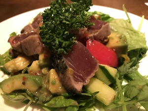 さらに、ローストビーフ、カツオの刺身をふんだんに使ったシーフードサラダなど、こだわりの手作りメニュー!