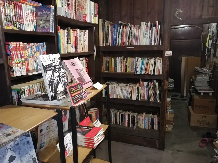 棚には、文庫や漫画本などの古本がぎっしり。