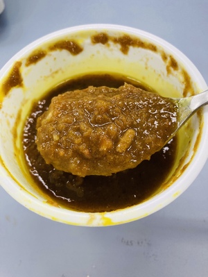 柿を完熟状態にしたあと、冷凍して、ペースト状にしたら、カレーと混ぜます。