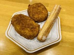 フライドチキン、牛肉コロッケ、ニンジンサラダ、チュロスなどなど