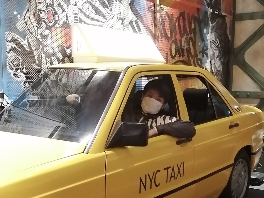 なんと、壁の両側には半分に切ったイエローキャブが置いてあったのです。