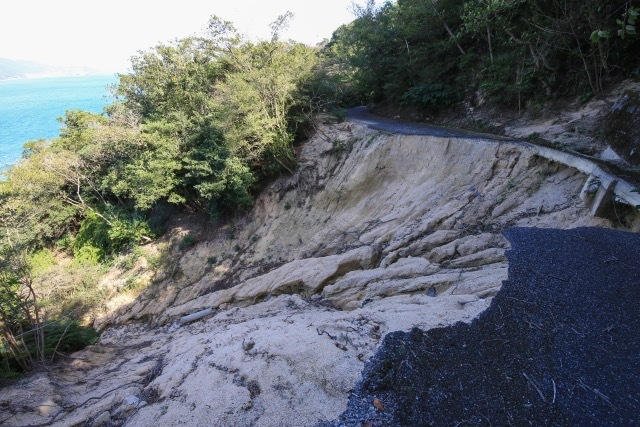 崖沿いや、土石流が流れるような渓流をまたいで通っている道路でも、そこに家がなければハザードマップに示されることはありません。