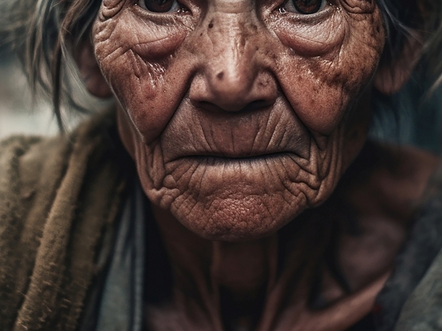 その上、老人は杖で足元をついてきます。