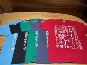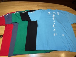 今回のズバリTシャツは、黒・赤・緑・水色・紺の5色をご用意しています。