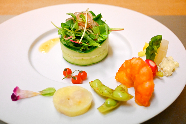 〇〇添えとか〇〇仕立てとか満載の前菜。