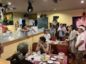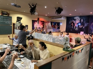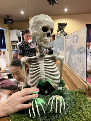 店内はハロウィン仕様でした。賑やかなガイコツさんが出迎えてくれました!!