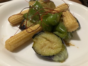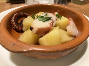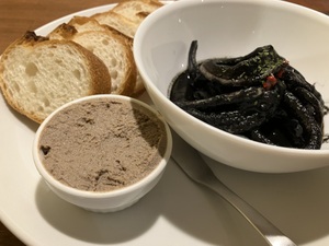 まずはバケット! タコのアンチョビポテト! そしてイカのスミ煮!