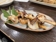 筍、紅ショウガ、メヒカリの天ぷらに、イカ焼き