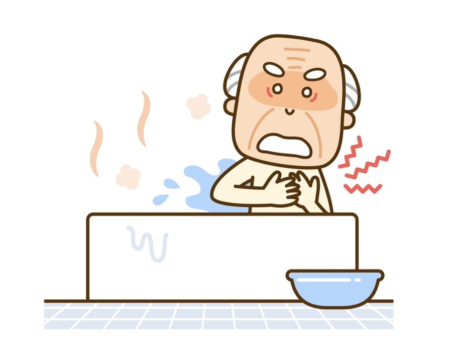 暖かいリビングから冷え切った脱衣場や浴室に入ると、血管が縮んで血圧が急に上がり、湯船に入ると血管が一気に広がることで血圧が下がります。
