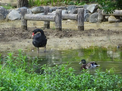 長い間隔離されていたコクチョウとマガモはようやく外に出られたのがうれしかったのか、
