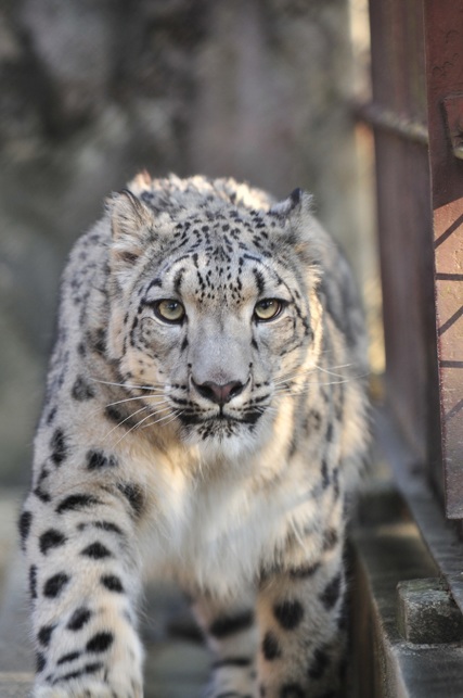 ユキヒョウの魅力はまずは小顔でスタイリッシュな体型、それから太くてきれいな尻尾をなびかせて飛ぶ姿がとても優雅で美しいことです。やはり寒い時期の方が比較的活発になりますので、ぜひ暖かくなる前に会いに来てください。