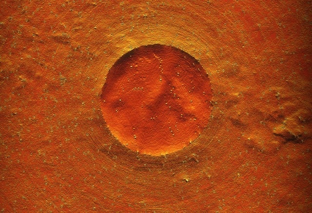 これは火星の地表で発見された地形。輪郭のような丸い縁取りもあり、ますますクマさん感を増しています。