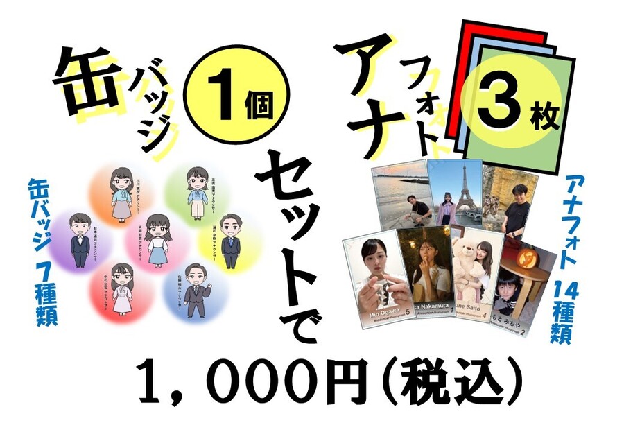 「缶バッジ & アナフォト(アナウンサーの写真カード)