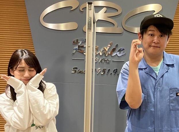 プロ野球中継の延長で番組開始が25分遅れとなり、始まるまでスタンバイしていた2人。