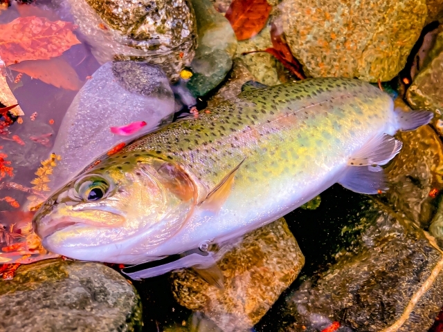ニジマスは川魚、キングサーモンは海の魚ですが、実はもともとマスとサケは一緒の生き物です。