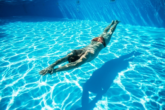 呼吸のため顔を水面から出すと抵抗が生まれるため、呼吸をいかに減らせるかも重要です。