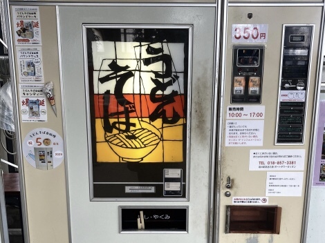 かつて「佐原商店」の前に置かれていたこの自販機は、長年地元住民やツーリング客、観光客に愛されてきましたが、交換部品の不足により現在は「道の駅 あきた港」で稼働中です。