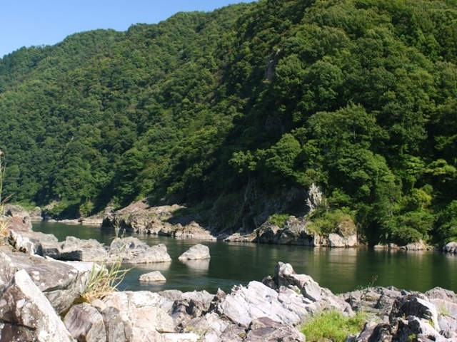 岐阜県美濃加茂市から愛知県犬山市にかけての木曽川を遊覧船で下る「日本ライン下り」。