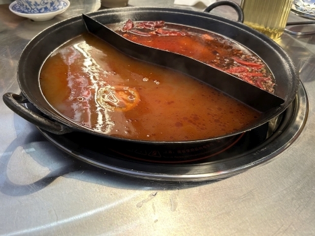 味つけは基本的に辛いですが、火鍋で使うお鍋は中で仕切られているのが特徴で、一方は真っ赤な辛いスープ、一方には豚骨などをベースとした白くて甘めのスープというように、違った味付けが一度に楽しめます。