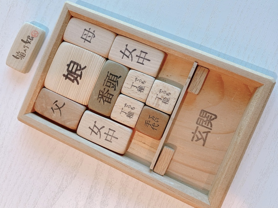 「箱入り娘の大家族」は、古くから高山地方で親しまれている「箱入り娘」というパズルゲームを、吉澤さんの父がアレンジして作ったものです。