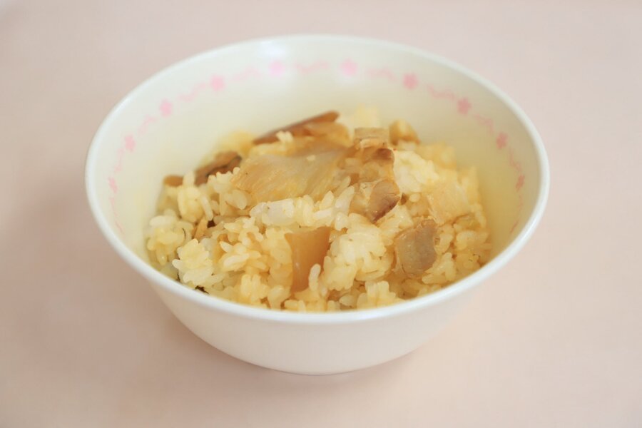 中島さん「キムチとつぼ付けたくあん、ベーコンを炒めたものを混ぜ合わせた混ぜご飯です。塩尻市内の中学校に在籍した栄養士が考案して、今でもこどもたちに大人気のメニューです」