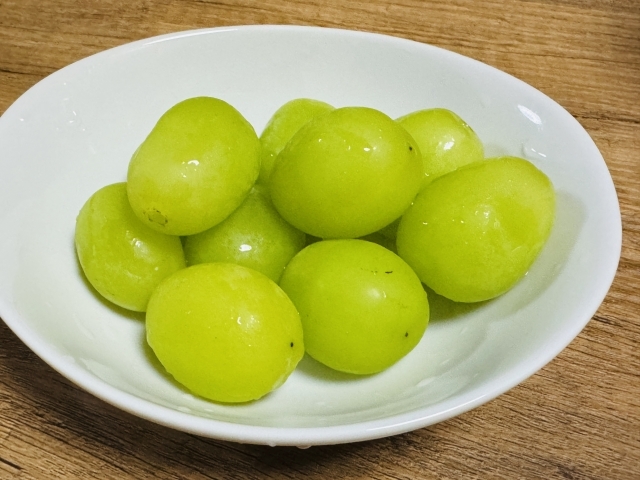 シャインマスカットは緑色だと綺麗に見えますが、臭さが残る場合があるため、黄色く色づいてきたものの方が甘みが強く感じられます。