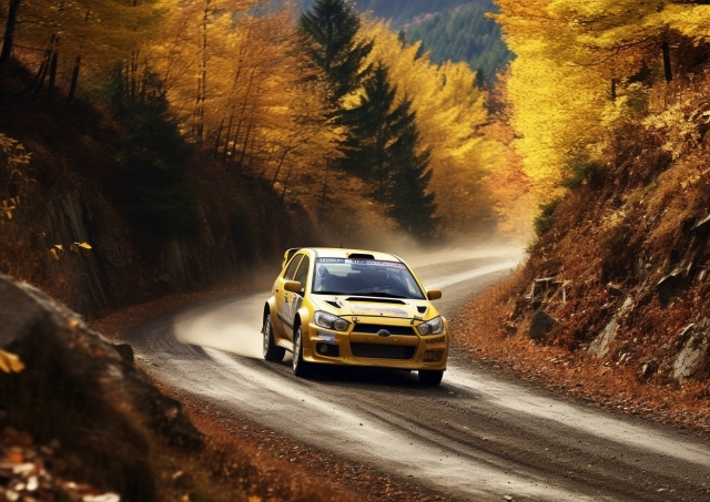 公道を駆け抜けるラリーカー