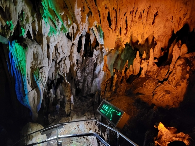 さらに洞内はライトアップによって表情を変え、さらにプロジェクションマッピングも行なわれます。