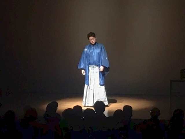 舞台は、ブルーの袴や青スーツなど、衣装も替えつつ熱演。
