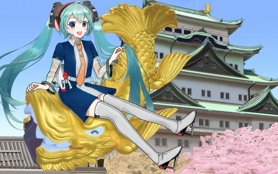 桜と名古屋城、そして今年地上に降ろされることになった金シャチが加えられ、この時期ならではの作品。もちろんキュートなミクちゃんも大きなポイントでした。