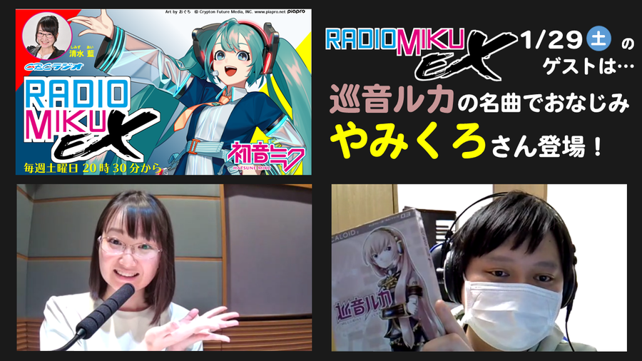1月29日放送のCBCラジオ『RADIO MIKU EX』では、この「巡音ルカ」をメインに曲を発表しているボカロP・やみくろさんのインタビュー第2弾を放送。