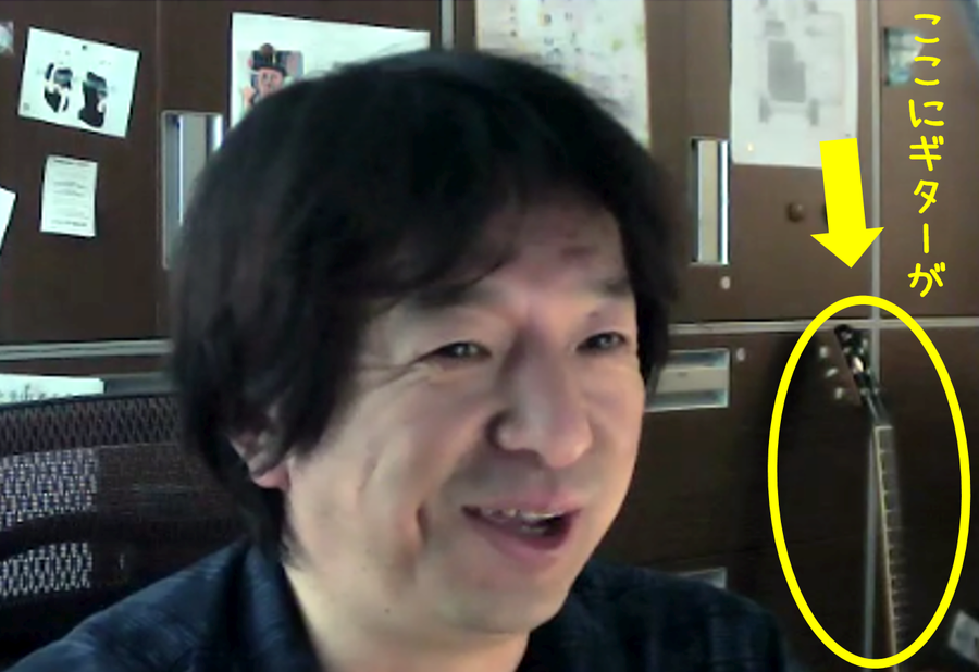 インタビュー中、伊藤さんの背後にはギターが置かれており、今でも弾くのか聞いてみた清水。