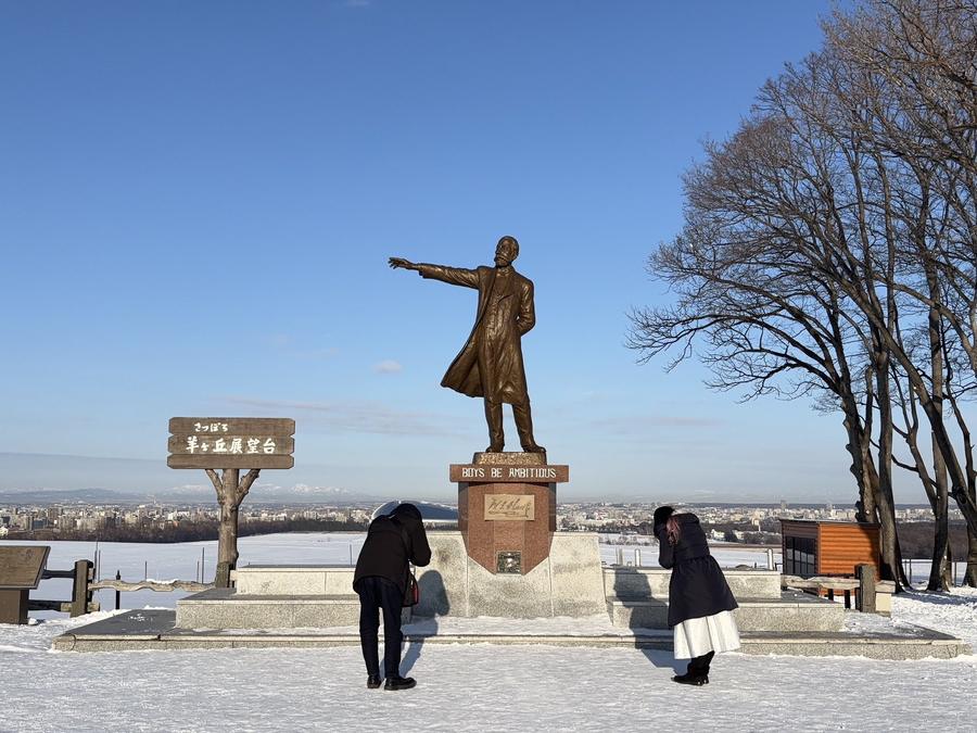 3年10ヶ月経て、クラーク博士像のある「さっぽろ羊ヶ丘展望台」へお詫びすることを企画した清水たち。