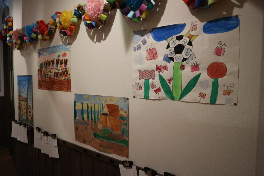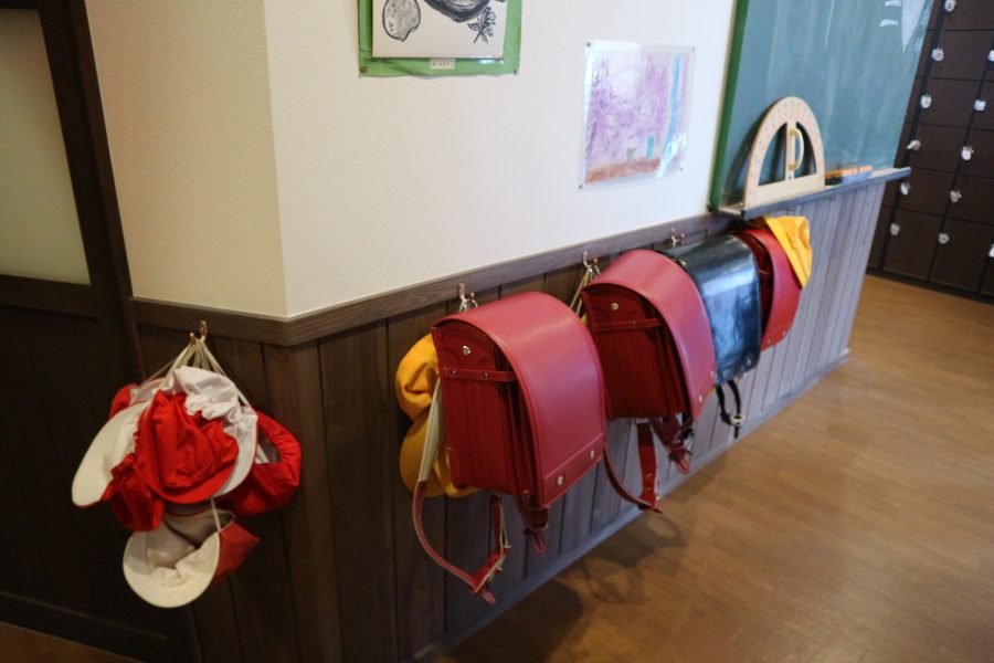 先生が迎えに来てくれて、そのまま奥に進んでいくと、下駄箱、黒板やランドセル…