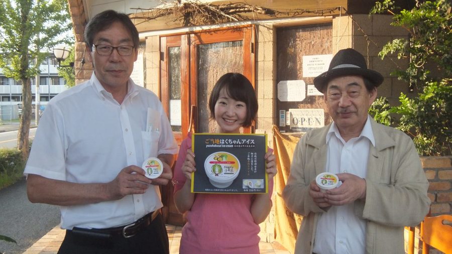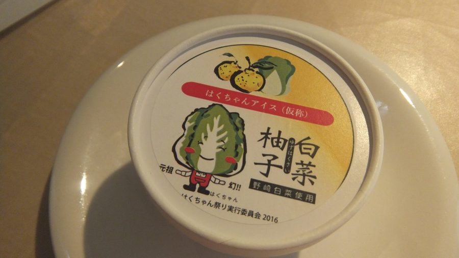 これまでも野崎白菜を使った創作料理などでPRをしてきたものの、旬の11月から1月頃しか提供できず、残り9ヶ月は忘れられた存在になっており、それなら1年中、夏場でも楽しんで頂けるものを、ということで「はくちゃんアイス」が誕生したそうです。