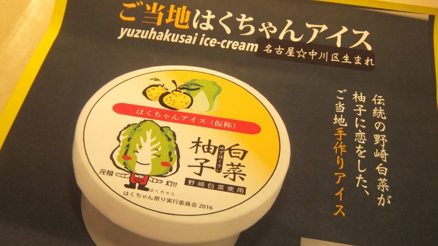 こちらで、原料に野崎白菜を使ったアイスが発売されています。