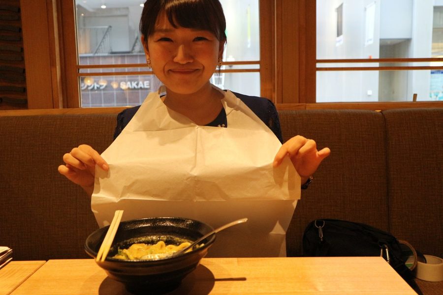 カレーうどんと一緒に出てくるのが紙エプロン。