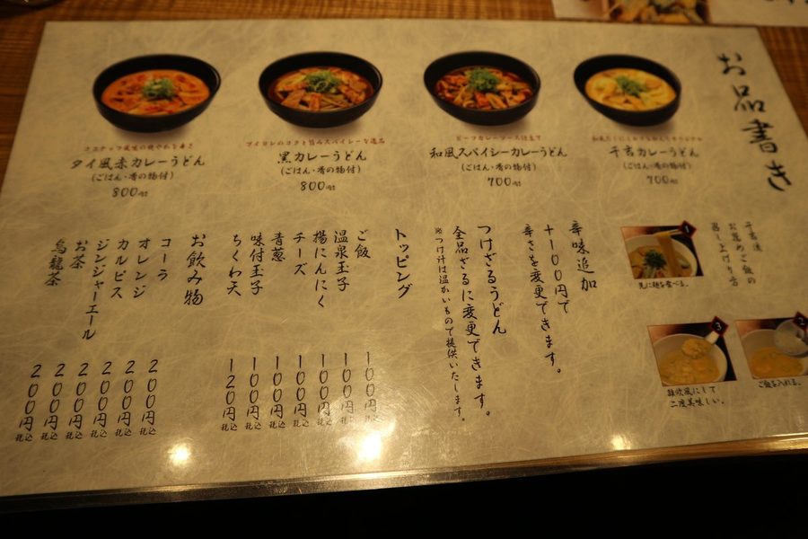 「和風カレースパイシーうどん」「黒カレーうどん」「タイ風赤カレーうどん」…全てカレーうどんですが、それぞれ味が全く異なります。